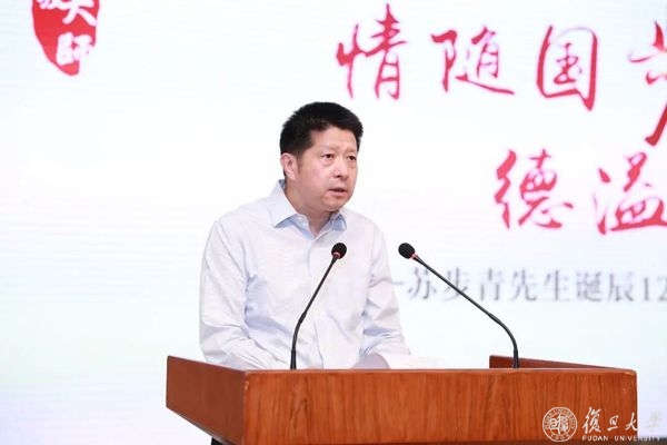 “先生为祖国的教育科学事业不懈奋斗一生,在新中国教育史、科学史和复旦校史上,在统一战线和对外合作交流领域,都留下了光辉而灿烂的一页。他是复旦的一面旗帜,我们以苏老为骄傲,他的崇高精神和光辉业绩将永远被复旦人铭记。”她说,学高为师,我们致敬苏老一生求索、勇攀高峰的宗师风范。苏老的一生是中国现代数学发展的生动缩影,他坚持不懈搞研究、聚精会神做数学的治学风范,永远激励着复旦师生自觉弘扬新时代科学家精神,不断向科学技术广度和深度进军。铸魂授业,我们致敬苏老传道青衿、高徒辈出的育人匠心。苏老把毕生精力都无私奉献给了人民的教育事业,他“欲效微余忘老拙,树人犹是百年心”的崇高师德和优良师风,永远激励着复旦教师言为士则、行为世范,努力做“经师”和“人师”的统一者,做学生为学、为事、为人的大先生。信而行远,我们致敬苏老矢志报国、此身属党的赤子深情。苏老无愧为中国知识分子的楷模,他胸怀家国、信念如磐、追求进步的风范和精神,永远激励着复旦人爱国奋斗、为新时代坚持和发展中国特色社会主义作出新贡献。