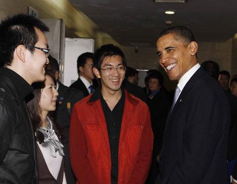 在整个交流活动中,奥巴马幽默的语言、优雅的风度和坚定的观点一次又一次引来听众们的掌声和笑声,尤其是当奥巴马强调美国坚持一个中国的政策、愿意向中国学习、中美共同向世界展示领导作用等观点时,听众都报以热烈的掌声。演讲结束以后,奥巴马特地绕场一周,与坐在前排的每一位中国青年听众握手道别,再次把整个交流活动推向高潮。