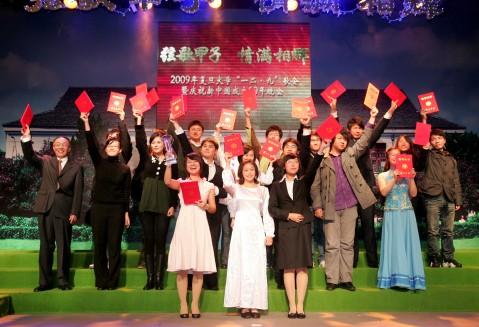 经过三场初赛的激烈角逐,12月8日晚,“弦歌甲子·情满相辉”——2009年复旦大学一二·九”歌会决赛暨庆祝新中国成立60年晚会在相辉堂举行,复旦学生网首次对“一二·九”歌会进行网络直播。校党委书记秦绍德、校党委副书记陈立民、校党委副书记刘建中等老师出席晚会并颁奖。