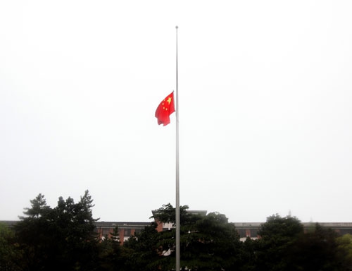 新闻中心讯 为表达全国各族人民对青海玉树地震遇难同胞的深切哀悼,根据国务院办公厅公告,2010年4月21日举行全国哀悼活动。我校决定,4月 21日全校所有国旗升旗处下半旗志哀,停止公共娱乐活动。