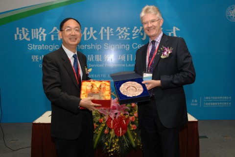 新闻中心讯 5月7日,复旦医院管理有限公司及上海泰福健康管理咨询有限公司、中山医院、华东医院、妇产科医院和眼耳鼻喉科医院分别与世界著名健康保险和医疗保健跨国公司英国保柏(Bupa)集团签署医院“管理质量服务”协议,此标志着中英两国政府签署的“中英卫生创新伙伴”计划已进入实质性实施阶段,附属医院特需医疗服务及结算流程将与国际商业保险机构接轨。