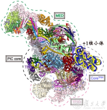 作为基因表达调控的核心,转录起始过程发生在基因启动子区,通过染色质重塑复合物剔除核小体暴露出启动子, 允许转录起始复合物(preinitiation complex,PIC)的组装,在中介体(Mediator)的帮助下组装成PIC-Mediator转录起始超级复合物。复旦大学生物医学研究院/复旦大学附属肿瘤医院徐彦辉团队在2020年和2021年连续发表四篇《科学》(Science)论文,围绕人源转录起始机制研究取得了系列重要突破,部分成果入选2021年度中国生命科学十大进展。