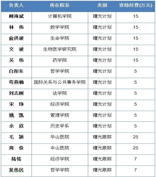 “曙光计划”是由上海市教育发展基金会倡议、出资并同上海市教育委员会共同实施的上海高校跨世纪人才培养计划,旨在加强上海高校中青年科研骨干队伍建设,培养和造就一批科研创新人才,增强上海高校知识创新能力。“曙光跟踪”项目用于资助已通过验收的曙光项目承担人,且正式获得部市级二等奖以上成果的第一完成人或一等奖排名前三名的完成人。