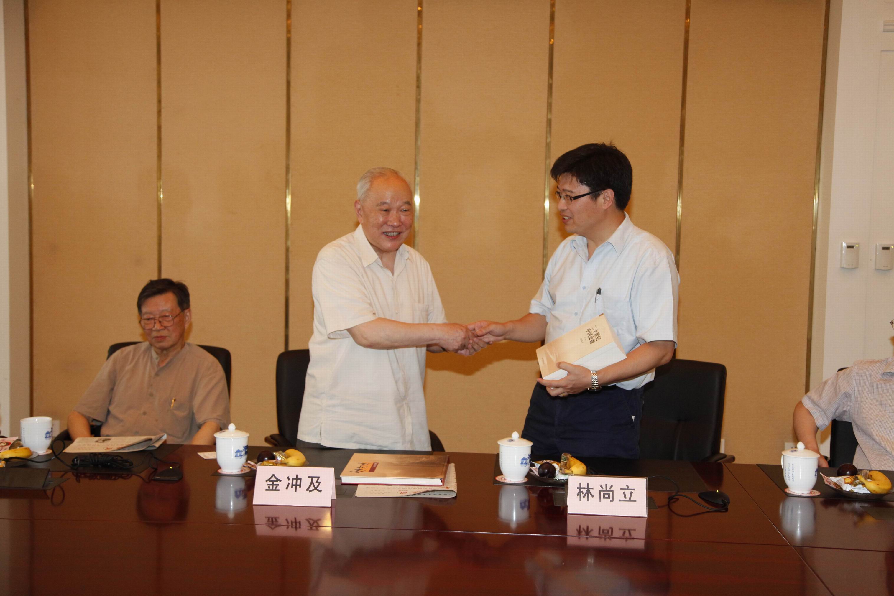 新闻中心讯 6月29日下午,原中共中央文献研究室常务副主任金冲及校友回到母校,在光华楼东辅楼206会议室与校内部分党史工作者代表亲切座谈。林尚立副校长出席座谈会。