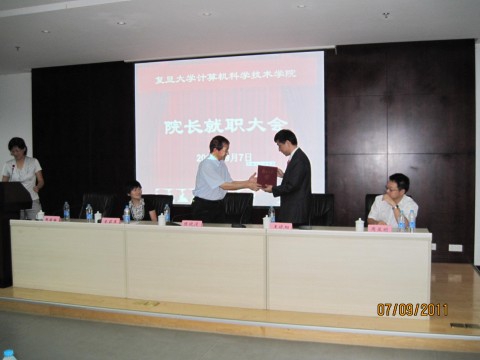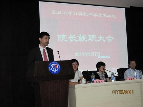 2011年9月7日上午,计算机科学技术学院新院长聘任宣布会在张江校区行政楼106报告厅举行。校组织部部长秦莉萍代表学校宣读院长聘任文件,常务副校长陈晓漫向王晓阳教授颁发院长聘书。人事处处长周亚明携副处长等人出席会议。学院党政领导及全院教师与会。学院党委书记张骏楠主持会议。