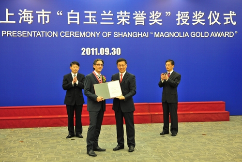 新闻中心讯 9月30日,2011年上海市“白玉兰荣誉奖”授奖仪式在人民大厦举行,上海市市长韩正向12位荣获“白玉兰荣誉奖”的外籍人士颁授证章、证书,我校附属肿瘤医院特聘教授劳伦佐·考恩(美国)获此殊荣。