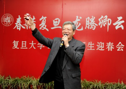 1月17日晚,我校邯郸校区师生迎春会在旦苑餐厅隆重举行,上海市教育委员会主任薛明扬、我校党委书记朱之文、常务副校长陈晓漫、党委副书记陈立民、副校长林尚立,以及有关机关部处领导,与五百六十多名师欢聚一堂。校党委副书记陈立民代表学校致祝酒辞。