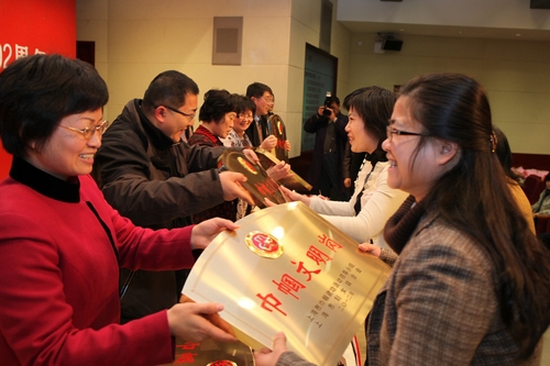 大会颁发了获得2010-2011年度上海市、市教育系统、复旦大学“巾帼创新奖”、“巾帼文明岗”、“比翼双飞模范佳侣”等先进奖项的个人和团队,并对“复旦女性家园志愿者”颁发了证书。药学院蒋晨、肿瘤医院血管通路护理小组张晓菊、管理学院郑明分别作为获奖代表发言。