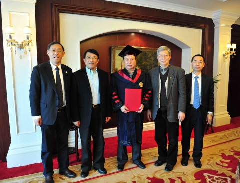 近日,复旦大学党委书记朱之文、校长杨玉良、副校长冯晓源等在北京会见了两会代表、中国泛海控股集团董事长兼总裁、复旦大学校董卢志强校友。校领导向身着校董袍的卢志强校董授予第五届校董聘书并合影留念。