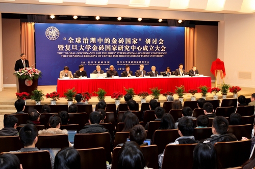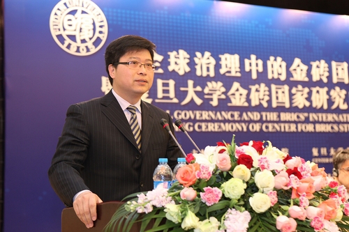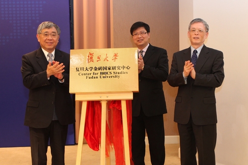 孙振宇大使、上海市政协副主席王新奎和林尚立一起为复旦大学金砖国家研究中心的成立揭幕。金砖国家研究中心是复旦大学整合了校内国际关系与公共事务学院、国际问题研究院、法学院和经济学院、管理学院等院系内从事金砖国家研究的专家学者,依托发展研究院的博士后工作站而建立的综合性研究机构。它的成立,标志着复旦大学的国际关系学科发展不仅呈现出加速走向跨学科综合研究的势头,而且同我国对外战略制定和实施有了更为紧密的结合。