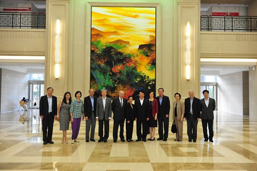 新闻中心讯 8月30日,全国政协副主席董建华、东方海外(国际)有限公司主席董建成及董氏家族一行10人访问我校。校党委书记朱之文、校长杨玉良在光华楼金厅亲切会见董氏家族一行,双方就人文社会科学发展、中美研究、董顾丽真艺术博物馆的建设深入交换了意见。