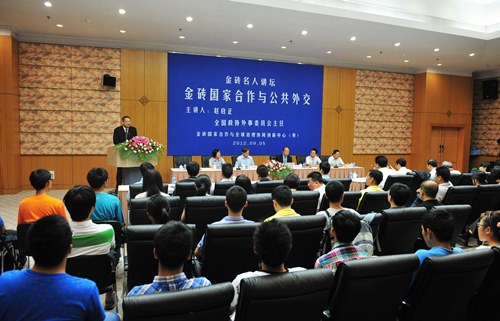 新闻中心讯 由复旦大学金砖国家研究中心发起的“金砖名人讲坛”9月5日在复旦大学正式开讲。全国政协外事委员会主任、2012年全国“两会”新闻发言人赵启正应邀担纲首讲嘉宾,发表了题为“金砖国家合作与公共外交”的主旨演讲。来自复旦大学和其他有关学术机构的100余位师生聆听了此次讲座,并与首讲嘉宾进行了充分的交流。