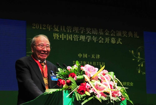 复旦管理学奖励基金会理事长、第十届全国政协副主席徐匡迪,复旦管理学奖励基金会副理事长、中国管理现代化研究会名誉理事长、第九、十届全国人大常委会副委员长成思危在当天的典礼上讲话,并为“复旦管理学杰出贡献奖”获得者颁奖。