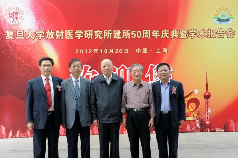 上海市卫生局副局长王磐石,复旦大学党委副书记王小林,苏州大学放射医学与防护学院院长柴之芳院士,中国疾病预防控制中心辐射防护与核安全研究所所长、卫生部核事故医学应急中心主任苏旭研究员,中国辐射防护研究院院长常学奇研究员,山东省医学科学院放射医学研究所所长特派代表李复生研究员,以及上海医学院等职能部门领导,复旦大学放射医学研究所历届党政领导,退休职工代表和在职员工约300人参加庆典大会。