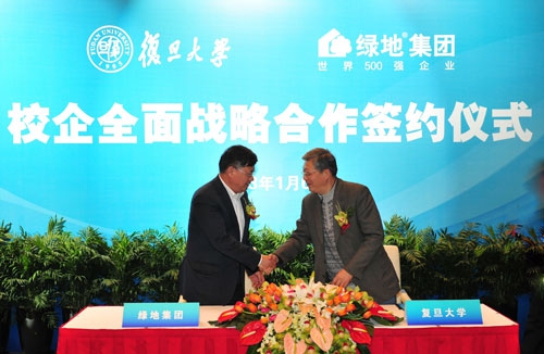 这次签署的校企全面战略合作协议主要内容包括,双方合作设立生态城市研究中心,共同开展生态城市研究,促进生态城市领域的合作交流、理念推广和技术应用;绿地集团将出资设立绿地—复旦校长奖励基金,连续10年对教学、学习、科研、创新等方面表现优秀的复旦大学师生进行奖励;合作开展复旦大学管理学院新院区项目建设,打造国际一流商学院。