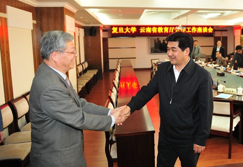杨玉良强调,云南省地处西南边疆,连接东南亚、邻近南亚具有重要的战略位置,学校要把对云南省教师和干部在我校培训提高到政治高度。同时,作为中组部的培训基地,学校对云南省高级干部培训可进行菜单式课程设计,提高培训的针对性。在谈到滇西落后地区建立学生实训基地的设想时,杨校长感慨的讲述了复旦大学支教团在宁夏西海固地区帮助当地发展教育的故事,认为在落后地区建立实训基地对激发学生服务国家、服务社会的热情具有重要意义。