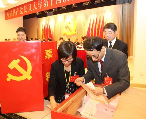 会议表决通过了1名总监票人和8名监票人名单,宣布了1名总计票人和16名计票人名单。与会代表以无记名投票方式,选举产生了中共复旦大学第十四届委员会和纪律检查委员会。丁强、尹冬梅、冯晓源、石磊、刘承功、华克勤、朱之文、许征、许玫、吴晓明、张骏楠、杨玉良、陆昉、陈立民、陈晓漫、周立志、周亚明、林尚立、金力、俞振伟、赵东元、钟扬、徐军、桂永浩、袁正宏、高天、黄丽华、萧思健、樊嘉29人(按姓氏笔划为序)当选第十四届党委委员。牛伟新、司徒琪蕙、刘季平、余青、张育、李华、李辉、李尧鹏、周虎、栗建华、袁正宏、钱飚、顾小萍13人(按姓氏笔划为序)当选第十四届纪委委员。当大会宣布选举结果时,全场响起长时间的热烈掌声。