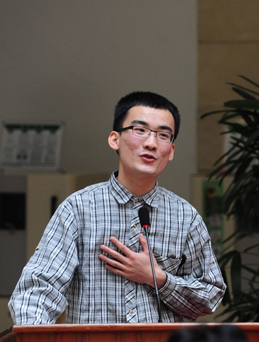 2013年图书馆读者借阅风云榜第一名,中文系本科生邢燚也讲述了他的阅读经历以及对于阅读的体会。他提出必须要保卫图书馆,因为正是它一直寄托着人类告别愚昧无知走向人性自由的梦想。紧接着,在场的嘉宾与读者进行了亲切的问答互动。杨校长、陈馆长和彭院长就读者提出的“怎样度过人生低谷?书院的学生应以怎样的态度来面对阅读”等问题,进行了热烈的交流与探讨。