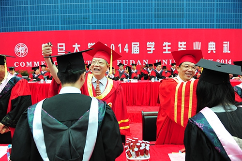 杨校长指出,复旦人应当努力成为一名知识分子,“知识分子应该是理性思维的楷模,守护理性就是守护知识分子的尊严,守护理性就是来创造一个大家都讲道理的社会环境。”要在当今社会守护知识分子的尊严,必须对自己提出更高的要求,要具有独立思考的能力,也要有道德的自律和道德的勇气,使知性与德性同在,对这个国家和社会负责、担当。他相信,经过复旦的训练,同学们已经认识到自己的责任,并且初步习得了担当的这种能力,这就是复旦给予毕业生所特有的印记。