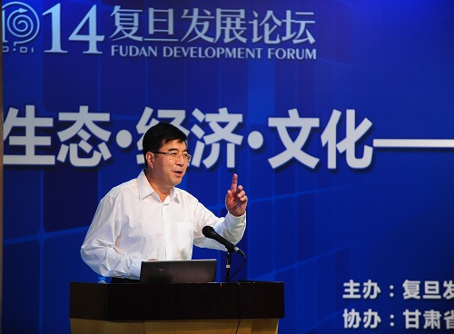 9月26日,由复旦发展研究院主办、中共张掖市委、复旦—甘肃丝绸之路经济带协同发展研究院协办的“2014复旦发展论坛”举行。本次论坛主题为“生态•经济•文化——丝绸之路经济带的战略前景”。甘肃省张掖市委书记陈克恭、外交部亚洲司副司长杨健、复旦大学生物多样性研究所陈家宽、复旦大学历史地理研究所教授侯杨方等嘉宾受邀参会。复旦大学党委副书记、复旦发展研究院副院长刘承功在论坛上致辞。
