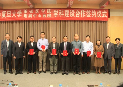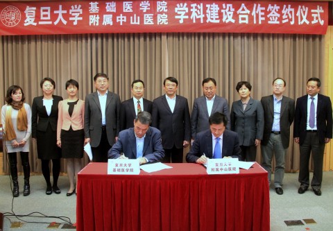 新闻中心讯 (作者 孙国根 恽小婧 摄影 杨光亮) 上海医学院为打破学科界限, 11月7日,复旦大学基础医学院院长汤其群和复旦大学附属中山医院院长樊嘉代表各自方在枫林校区签署3份协议:《复旦大学基础医学院与复旦大学附属中山医院学科建设合作框架协议》以及在此框架协议下已率先启动的《基础医学院病理学科与中山医院相关学科合作协议》和《基础医学院人体解剖学科与中山医院相关学科合作协议》。此标志着双方的深层次合作已经拉开帷幕,对探索如何建立基础与临床结合的最佳模式,基础医学院如何与其他附属医院交叉合作有重要意义。