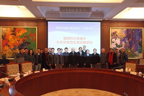 新闻中心讯 1月18日上午,复旦大学环境科学与工程系王祥荣教授主持的国家社科基金重大项目“我国特大型城市生态化转型发展战略研究”(14ZDB140)启动仪式在光华楼思源报告厅举行,学校领导和相关部处负责人及国内外20余名知名专家学者参加了启动仪式。