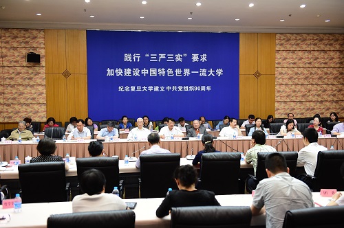 在听取大家的发言后,朱之文作了讲话。他全面回顾了90年来复旦大学党组织所走过的光辉历程。他指出,复旦大学是一所具有光荣革命传统的学校,复旦的发展始终与近代以来国家和民族的命运紧紧相连,复旦党组织和广大共产党员始终站在时代的前列。在革命战争年代,他们为了民族独立和人民解放而英勇斗争,在和平建设时期,他们为国家教育科学卫生事业的发展而勤奋工作,为国家富强、民族复兴、人民幸福而不懈奋斗,涌现出许多先进典型和感人事迹。