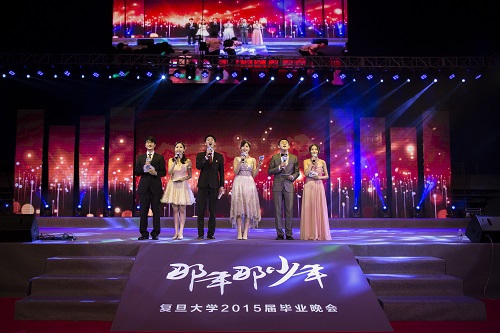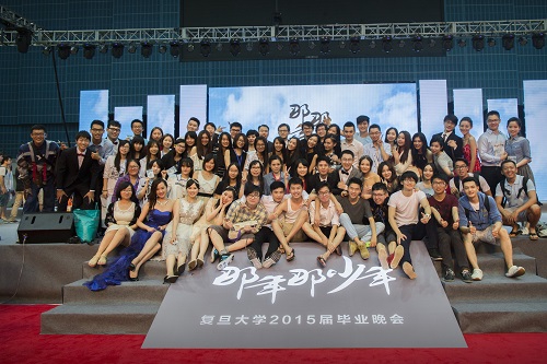 6月28日晚, 2015届毕业晚会在正大体育馆举行,毕业生们用一场自编自导自演的晚会共同回望“那年那少年”的情怀,告别陪伴自己青春岁月的母校和同窗师长。复旦大学校长许宁生、党委副书记尹冬梅等领导、老师和嘉宾也出席晚会,向毕业生道一声“毕业快乐”。
