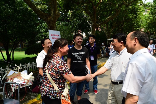 迎新当天,校党委书记朱之文、副书记袁正宏、校长助理丁光宏与相关部门负责人一起来到报到现场看望新生和家长,并亲切慰问了服务在迎新一线的辅导员。