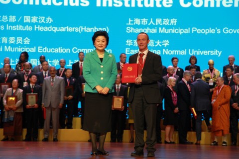 我校作为最早参与共建海外孔子学院的国内高校之一,自2007年与爱丁堡大学共建苏格兰孔子学院、2007年与诺丁汉大学共建诺丁汉大学孔子学院以来屡次获得孔子学院总部的肯定:2012年复旦大学获得“孔子学院先进中方合作院校”称号;爱丁堡大学苏格兰孔子学院5次荣获“全球先进孔子学院”称号,爱丁堡大学校长提摩尔•奥谢(Timothy O’Shea)先生于2011年获得 “个人突出贡献奖”;诺丁汉大学孔子学院外方院长姚树洁教授则于2013年获得“孔子学院先进个人奖”。