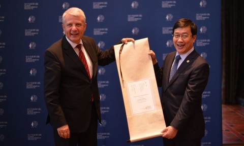 (Enrico Letta)一同受聘为我校发展研究院国际顾问委员会委员,加拿大阿尔伯塔省卫生厅副厅长卡尔·阿姆莱恩(Carl Amrhein)受聘为我校发展研究院客座教授。