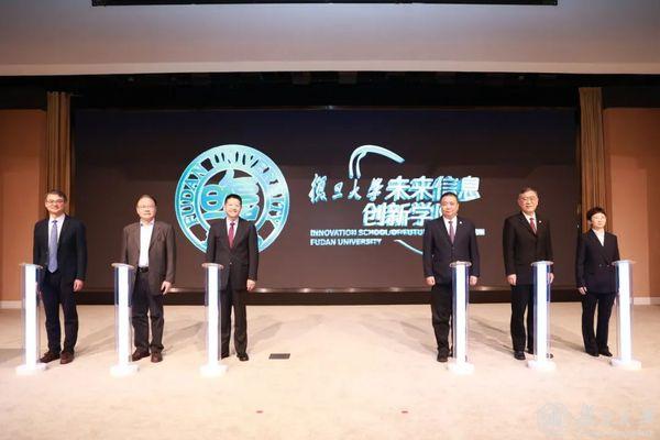 现场,裘新,金力,周磊,中国科学院院士褚君浩,未来信息创新学院党委书记徐阳,创新学院执行院长迟楠共同为学院揭牌。