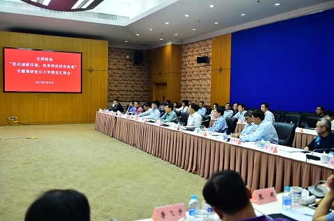 新闻中心讯 5月26日下午,全国政协副主席陈晓光率队,全国政协常委、教科文卫体委员会主任张玉台任组长的全国政协“优化创新环境,改革科技评价体系”专题调研组来到复旦大学调研。陈晓光一行察看了聚合物分子工程国家重点实验室和专用集成电路与系统国家重点实验室——器件与工艺实验室,听取了我校领导、专家学者和科研人员的工作汇报,并座谈交流。