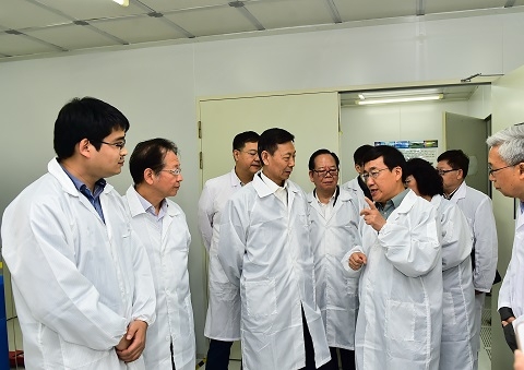 在校长许宁生院士、常务副校长包信和院士的陪同下,陈晓光一行察看了聚合物分子工程国家重点实验室和专用集成电路与系统国家重点实验室——器件与工艺实验室,了解高分子材料在基础应用、生物医用和能源领域的最新研究成果,以及被誉为“晶体管中的混合动力赛车”的半浮栅晶体管项目成果。