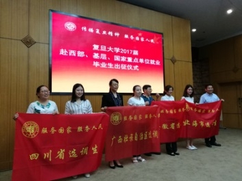 复旦大学基层就业发展论坛暨2017届赴西部、基层、国家重点单位就业毕业生出征仪式在下午进行。各省(市、自治区)组织部门代表、国家重点单位代表、校内相关职能部处负责人、导师代表、院系学生工作队伍代表,以及2017届即将赴西部、基层、国家重点单位就业的毕业生齐聚一堂。