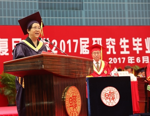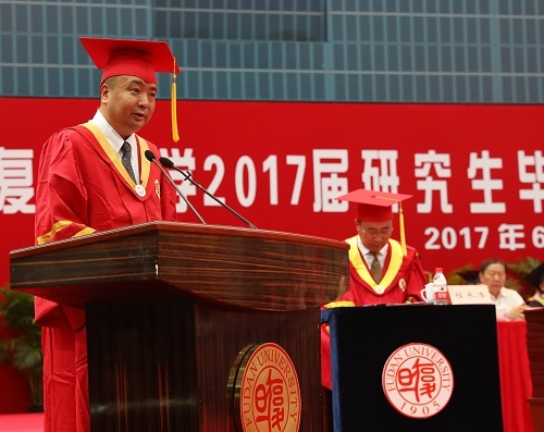 6月23日下午,复旦大学2017届研究生毕业典礼暨学位授予仪式在正大体育馆隆重举行。校党委书记焦扬、校长许宁生等学校党政领导,校学位委员会委员,研究生导师代表,各院系党政领导,2017届全体毕业研究生以及毕业生家属出席典礼。毕业典礼由常务副校长桂永浩主持。