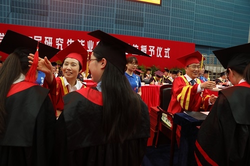 许宁生希望同学们在毕业之后能够坚守人文精神,坚守真善美的价值追求,坚守诚信做人的道德底线,这是社会的期待,也是毕业生们应尽的责任。