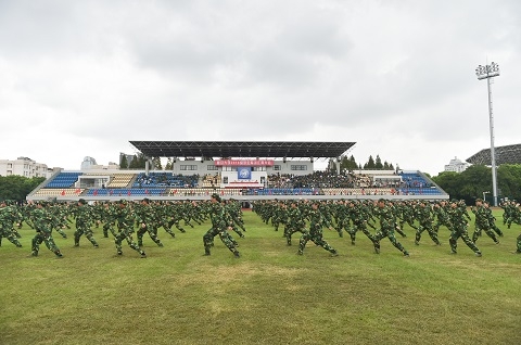 9月2日下午,复旦大学2016级学生军训汇报大会在南区操场隆重举行。承训部队首长,复旦大学党委书记焦扬、党委副书记许征以及军训各保障单位部处长出席本次汇报大会。