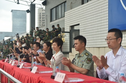 最后,承训部队首长发表讲话。首长在讲话中充分肯定了2016级复旦学子在军训中刻苦训练的成果,勉励同学们要志存高远,勇于开拓,要学会用自己的努力,经受住接下来的一次又一次考验。