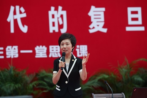 同时,面对这批刚参加完开学典礼,兴奋之情尚未褪去的“新复旦人”们,焦扬语重心长地说,“‘复旦人’这三个字,有着沉甸甸的分量,因为这背后体现的是复旦大学这所百年名校的光荣传统、精神底蕴,这种传统、精神和底蕴,从来不是孤立存在的,是在时代的大潮中积淀、磨砺形成的,更是在与时代不断融合、碰撞中逐渐深化的。”她用生动的故事和详实的数据告诉新生们,“面对国家的召唤、人民的需要,复旦人从来是挺身而出。”