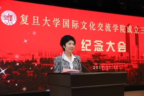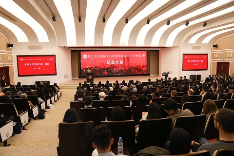 11月11日上午,复旦大学国际文化交流学院举行建院三十周年纪念大会。复旦大学党委书记焦扬到会祝贺并发表讲话。兄弟院校代表、国外合作机构的代表、国际文化交流学院的校友和师生300多人出席活动。