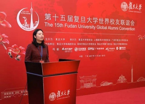 校党委书记焦扬在11月25日上午举行的开幕式上,代表学校向来自世界各地的校友致以问候。她说,建校112年来,一批又一批粤港澳籍学子前往复旦求学,成长为社会栋梁;同样,也有一批又一批来自全国各地的复旦学子毕业后南下粤港澳,扎根珠三角,在这块南方热土上,服务社会发展,传播复旦精神,架起了复旦与粤港澳的情谊之桥、发展之桥。