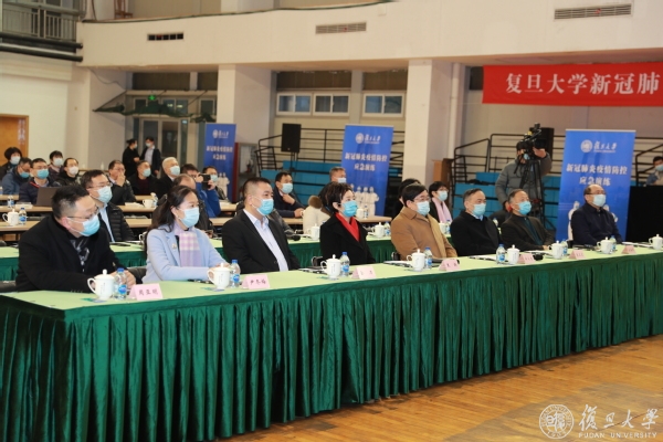 校党委书记焦扬、校长许宁生等学校疫情防控工作领导小组成员,相关部门、部分院系和科研机构负责同志在复旦大学邯郸校区北区体育馆观摩了本次演练。