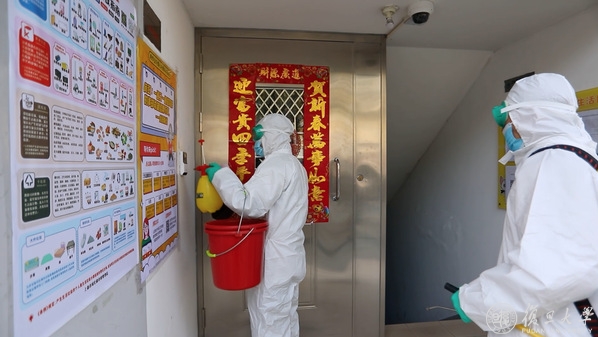 一旦启动应急响应机制,总务处负责开展楼宇消杀工作,对门把手、楼梯扶手、宿舍、盥洗室等区域进行重点消杀。