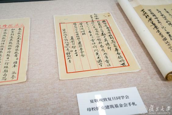 夏敬观通知复旦同学会取募捐款手札等多份历代学人、专家教授的名人手札展出。内容涉及商讨办校、切磋学术、培育人才等内容,从不同侧面反映学校的发展历程。
