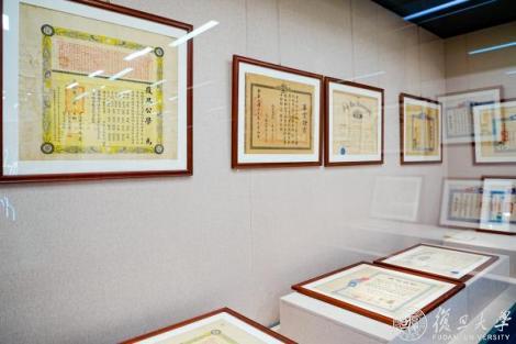 复旦自创校至上世纪60年代有代表性的毕业证书、文凭等也亮相展览。其中包括印有龙纹和懿旨的最早的复旦文凭,民国时期印有孙中山头像的文凭,以及新中国成立后印有为人民服务字样的文凭等。这些证书上面详细记载了学校当时的学制、系科专业等情况,文凭样式反映出中国社会的变迁,其内容更折射出中国高等教育变革的进程。