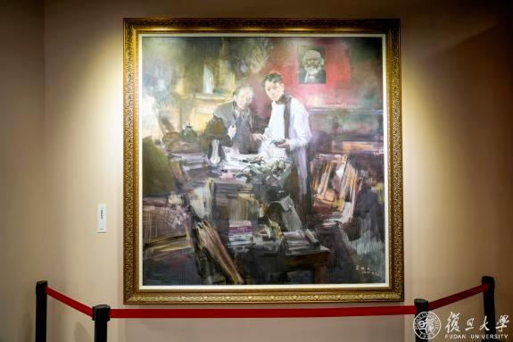 其中,著名油画家俞晓夫创作的油画《真理的味道》艺术再现了陈望道在义乌分水塘老宅柴房翻译《共产党宣言》的场景。据悉,该画由上海市教育发展基金会邀请俞晓夫创作并捐赠复旦大学,此次也是该画首次在复旦校内展出。