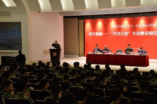 报告会上,连队指导员王金龙首先作了题为《用习主席系列重要讲话精神建连育人》的报告,用连队丰富的案例展示“大功三连”如何传承“煤油灯下学毛著”的精神。士官长张海生虽然仅有初中文化,但积极向大学生士兵求教,提高了新装备操作技能,先后被表彰为优秀“四会”教练员、优秀士官标兵,获得全军士官优秀人才奖。战士陆钧杰的母亲刘嘉彤从一位普通母亲的角度,讲述钧杰在“大功三连”的锻炼中历经蜕变,最终成长为一个充满阳光的军营男子汉的故事。清华大学2016级博士研究生李冲结合自己的成长经历,分享了他的参军梦想与扎实的部队经历。一句“心中有信仰,脚下有力量”让在场同学振奋不已。