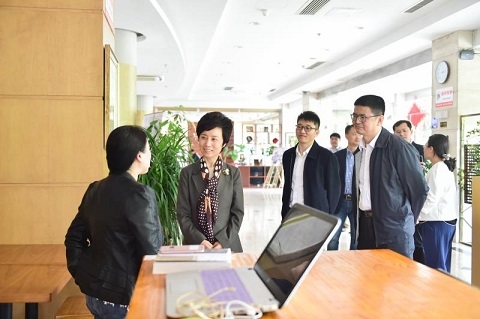 焦扬、陈立民一行实地走访了北苑留学生公寓园区、亚青中心住宿中心,参观了外国留学生宿舍、留学生心理咨询中心等,听取了外国留学生工作处处长杨增国关于我校外国留学生招生工作、学生事务管理和公寓园区服务等方面工作的汇报。