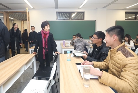 校领导来到整体修缮后新投入使用的第六教学楼,实地走访查看了第六教学楼各门课程教学开展情况,现场询问了解师生对于教学楼新设施的使用感受和意见建议。